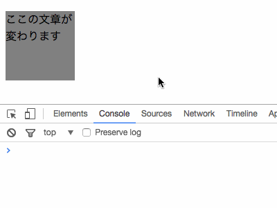 これをブラウザで実行した例です。文章をクリックすると、テキストが変化します。