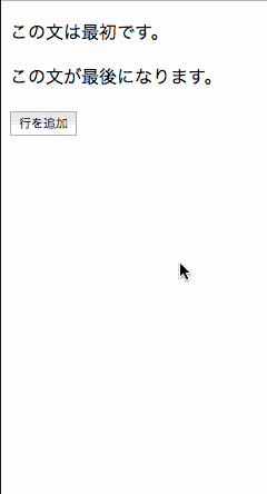 既にある子要素(このサンプルでは「ここにpタグが追加される。」と書かれたpタグ)よりも後に新しく作ったpタグが追加されます。