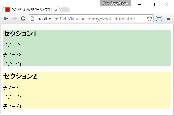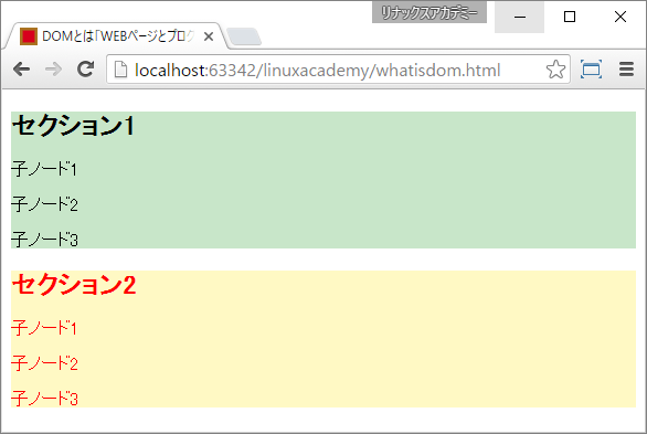 section2node2.innerHTML = '子ノード2は変更されました';
