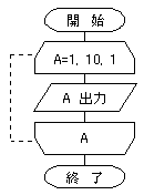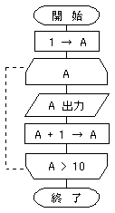 @ 左図のフローチャートでは、[Aの値出力]の処理を10回繰り返す。