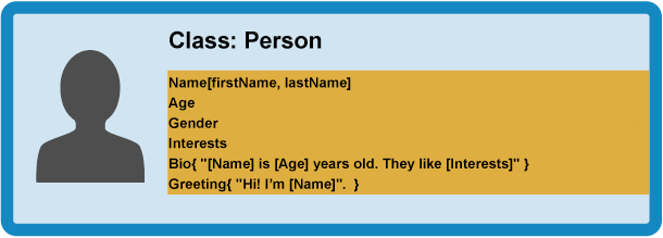 はじめに、オブジェクト入門の最初の記事にある、人物の包括的なデータや機能を定義した、Person オブジェクトに戻りましょう。ある人物について知り得る事柄は数多くあります (住所、身長、靴のサイズ、DNA 情報、パスポート番号、顕著な人格特性など) が、このケースでは名前、年齢、性別、趣味を表示することに興味があるだけです。また、このデータに基づいた短い自己紹介や、挨拶をさせられるようにもしましょう。これは抽象化 ? より複雑な事物を、プログラムの目的に沿って簡単に操作できるように、その最も重要な側面を表現する、シンプルなモデルを作ること ー として知られています。